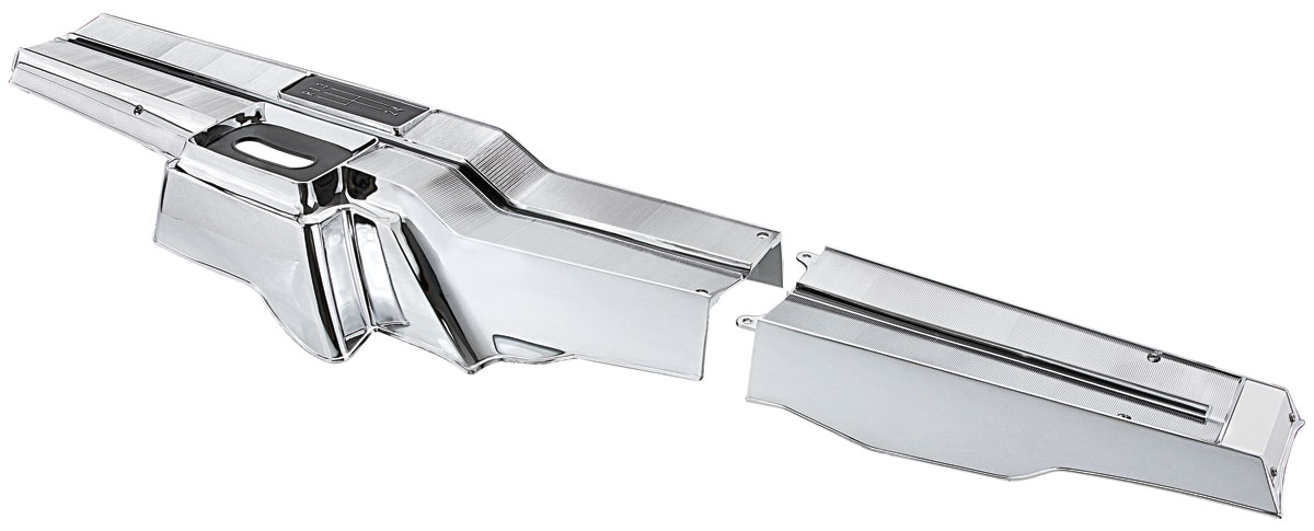 Enhance the appearance of your Chevelle or El Camino interior with a complete console kit from OPGI. While originals were cast in pot-metal, these reproductions are manufactured in durable injection-molded plastic, and feature a brilliant chrome-plated finish for an outstanding appearance. Consoles come in two pieces just like originals, and these complete kits for 4-speed applications include the shift boot, retainer, shift pattern plate, and rear console light lens. Guaranteed top-quality!