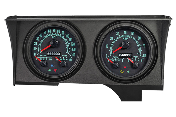 Kits includes: 78-88 Monte Carlo Mounting bracket 4-3/8" Speedometer (140 MPH) with water temp and oil pressure 4-3/8" Tachometer (8,000 RPM) with programmable fuel gauge and voltmeter Back clamps AMP plug connectors with color coded wiring harness Oil pressure sender (240-33 ohm) Temperature sender (NVU hi match) Hardware kit Bushing kit Detailed instructions