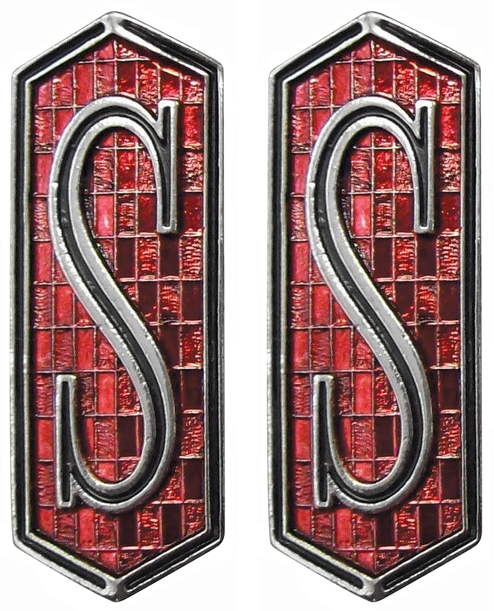 Add an authentic detail to your door panel with this reproduction Cutlass "S" emblem from OPGI. Each emblem is cast and chrome-plated prior to being painted with the correct black and red accents for a genuine appearance. Emblems feature properly located mounting pins for installation and are available individually or in a convenient pair.