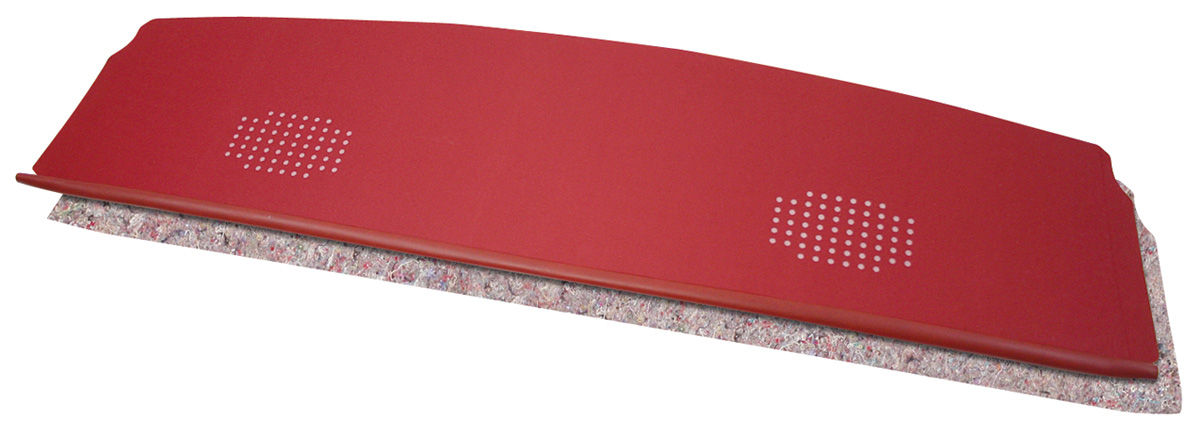 These are the reproduction mesh version of the seat shelf above the rear seat, under the window. The 1961-67 shelf is conveniently punched for a single, center-mounted rear mono speaker, while the 1968-73 shelves are punched for dual 6" x 9" stereo speakers—one on each side. The shelf and jute can be conveniently ordered in one discounted kit. The 3M spray adhesive is recommended for an easy installation.