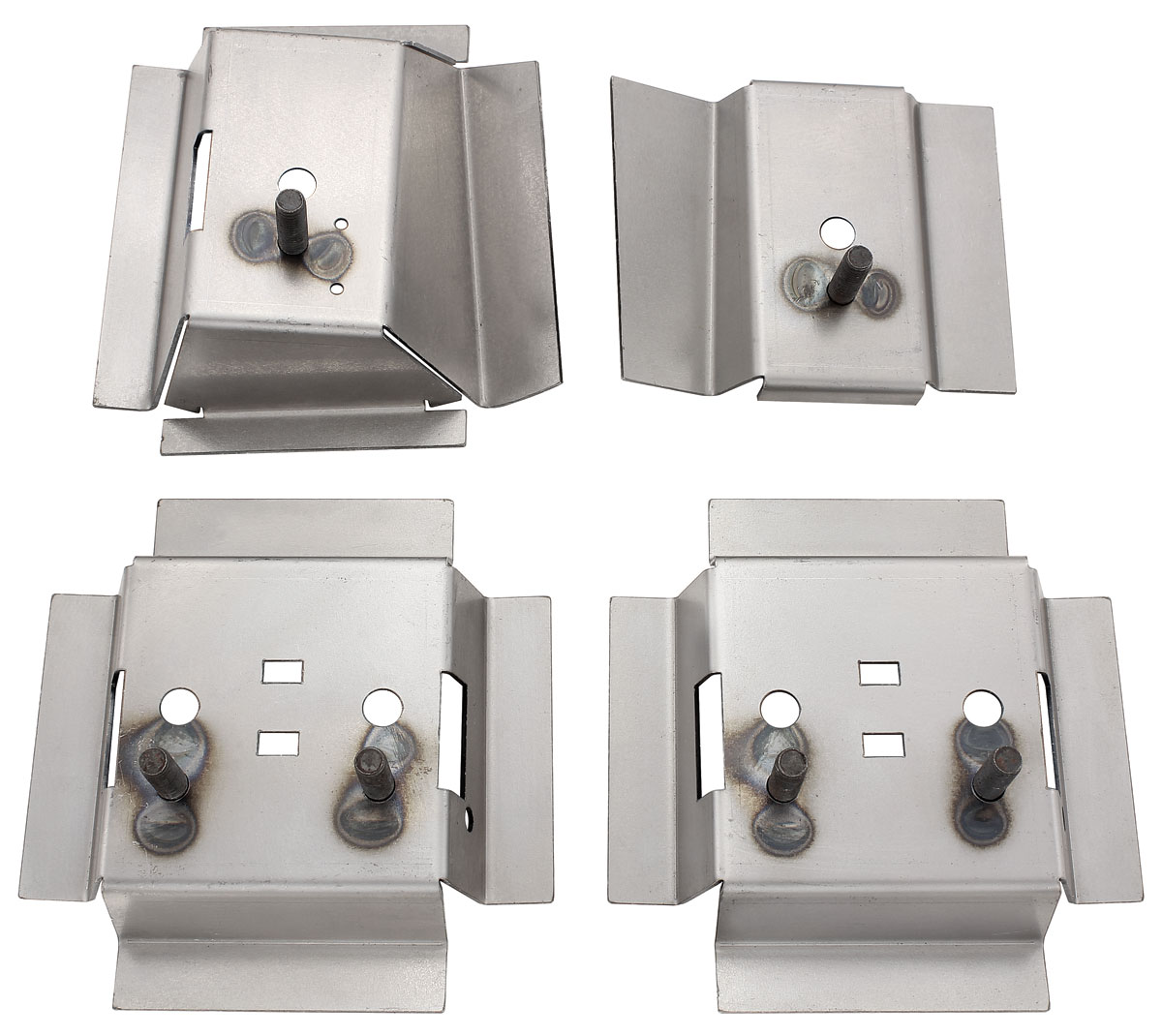 Return your G-Body to original condition with a set of these factory-style seat mounting brackets. When welded to your floor pan, the brackets allow the installation of OE buckets or a 45/55 bench seat. Each of the four pieces is manufactured from steel and includes the correct seat mount holes and studs for originality. Sold as a four-piece set.