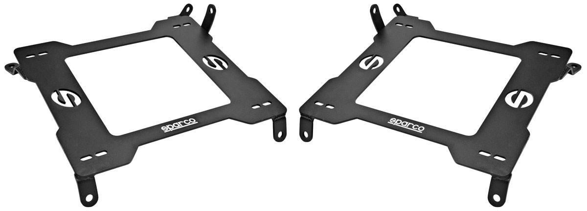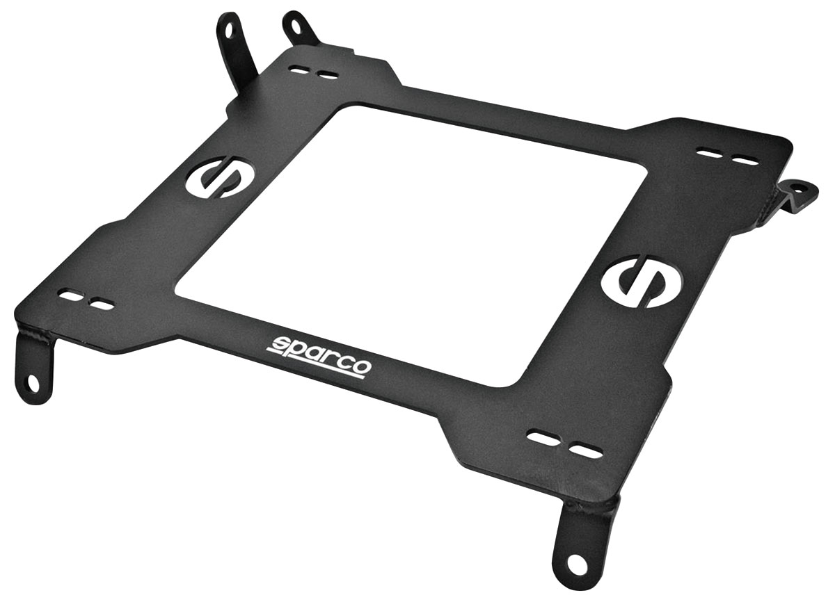 Sparco Seat Bases utilize the factory seat mounts on your vehicle's floor and provide a flat surface for mounting your Sparco seat. All seat bases are vehicle specific and provide a 100% bolt-in installation. The Street Series Sparco seat base for Street Performance seats is constructed with 3/16" thick steel to provide a strong flex-free mount and designed to work with the Seat Slider Track. In addition to the mounting holes provided for standard bolt-on installation, the Sparco base has a wide metal platform to allow custom mounting if a slider is not utilized. (drilling required). This direct installation is an option for race vehicles where the lowest seat position is desired. Each base is powder coated in a black wrinkle finish and sold individually for one seat