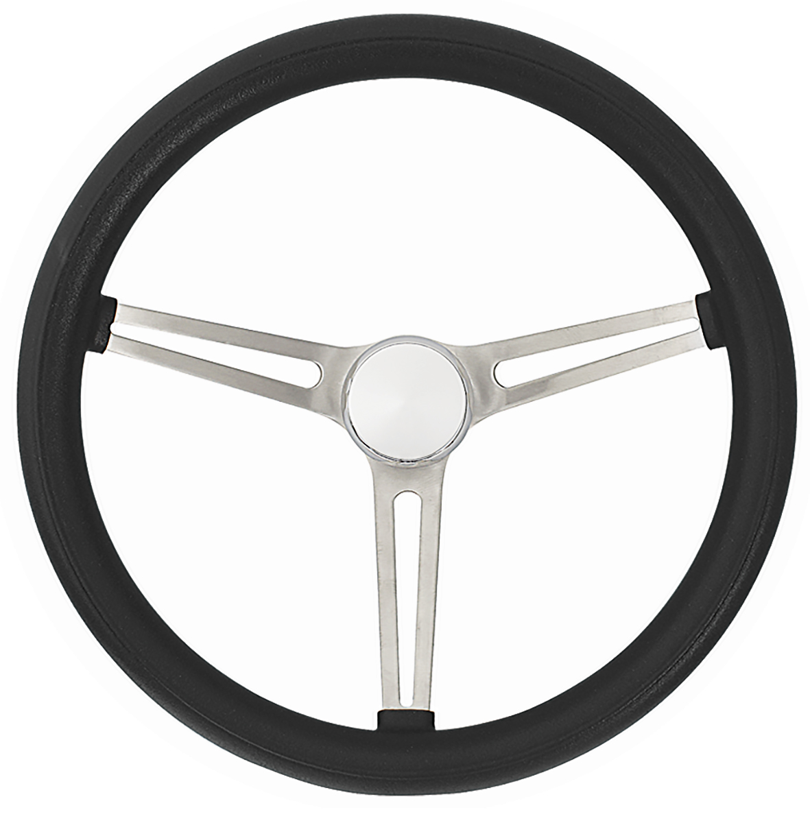 The name says it all! The Classic Oldsmobile wheel is a throwback to the muscle cars of the 1960s. Features include a black foam cushion grip and brushed steel spokes. The Classic Oldsmobile wheel is 15" in diameter with a 4-1/8" dish.