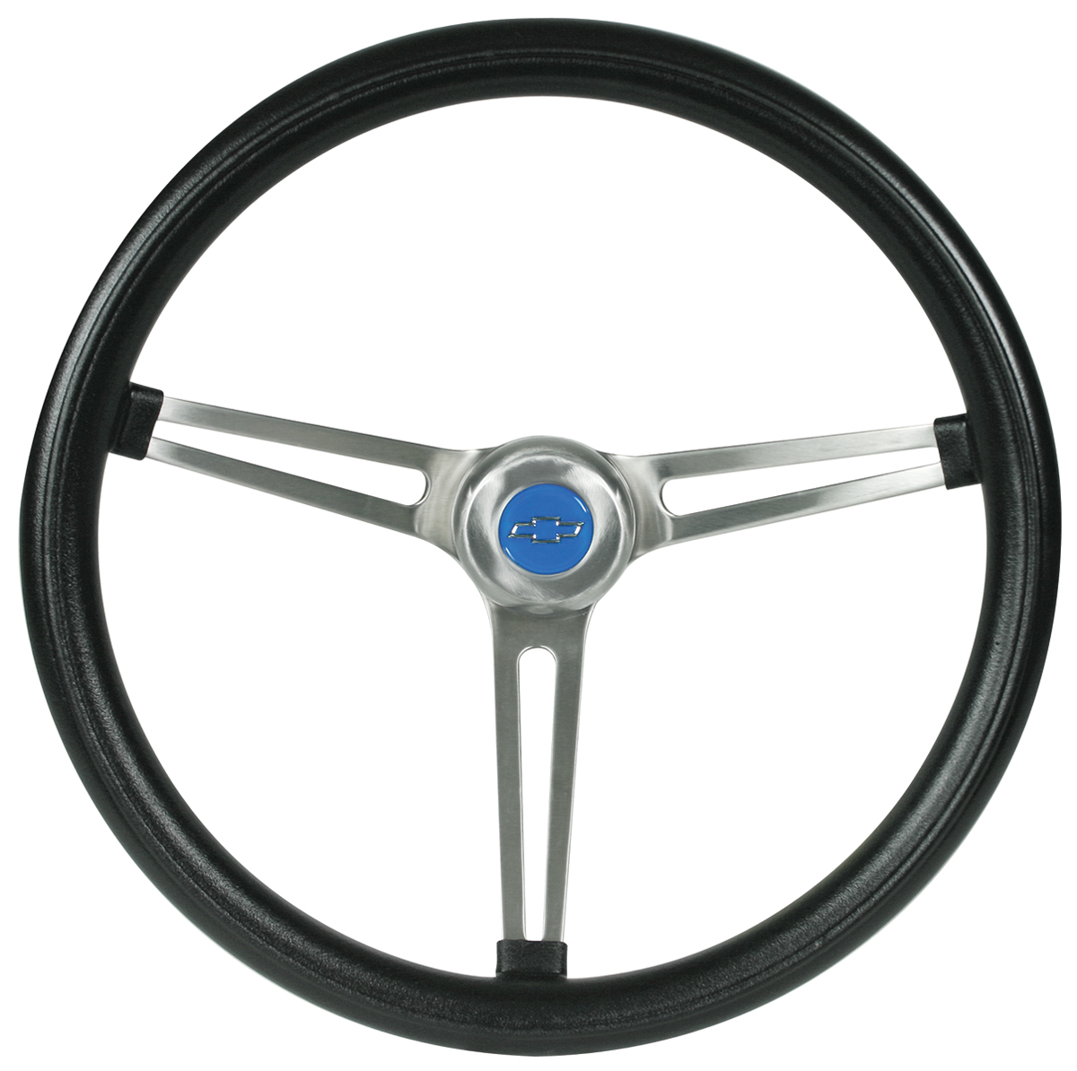 The name says it all! The Classic Chevrolet wheel is a throwback to the muscle cars of the 1960s. Features include a black foam cushion grip and brushed steel spokes. The Classic Chevrolet wheel is 15" in diameter with a 4-1/8" dish.