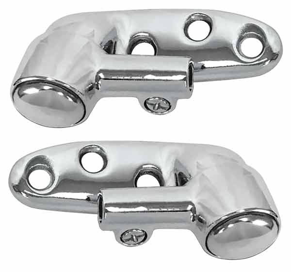 These high-quality reproduction sun visor support brackets are ideal for any restoration. Each support is precisely cast to OEM specifications for a factory fit and appearance. Depending on application, the supports are available in the correct chrome-plated or brushed satin finish. Sun visor support brackets do not include hardware unless specified.