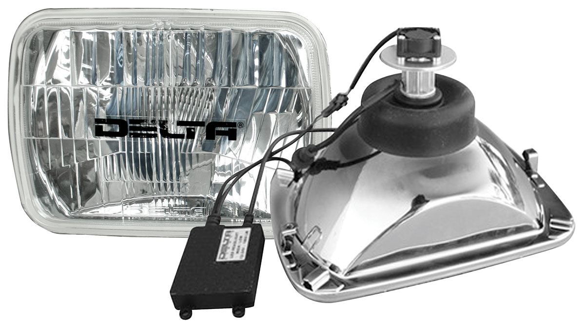 Headlights, Delta Lights LED, 7x6" Rectangle, H4 Bulb, High/Low-Beam