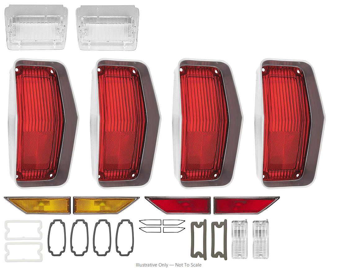 Lens Kit, Exterior, 1970 Cut/442, PK, Tail, SLVR Trim, BU, F/R Marker, W/Gasket