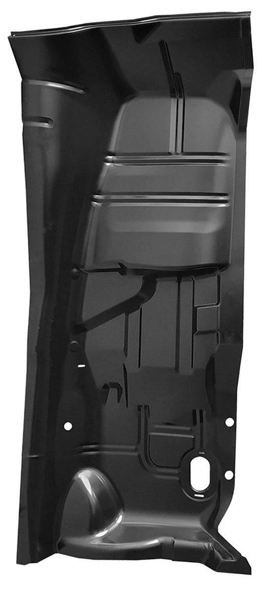 Reproduction to factory specifications, these steel floor pan halves are stamped from sturdy sheet steel with precision to match the original contours and ridges. Each 62" x 30" pan arrives with an electro deposit primer for supreme corrosion resistance.