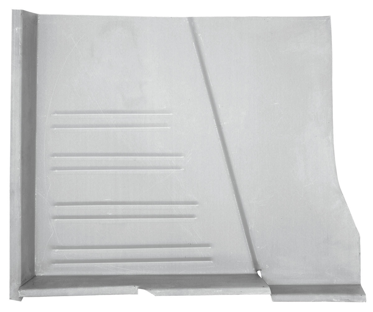 These authentic reproduction floor pans are stamped to original factory specifications for a superior fit and finish. Each U.S.-made pan features a premium grade steel construction and includes the correct reinforcing ribs for strength.