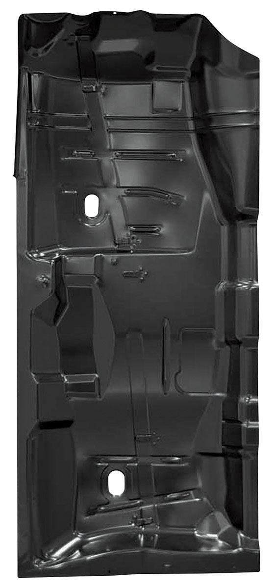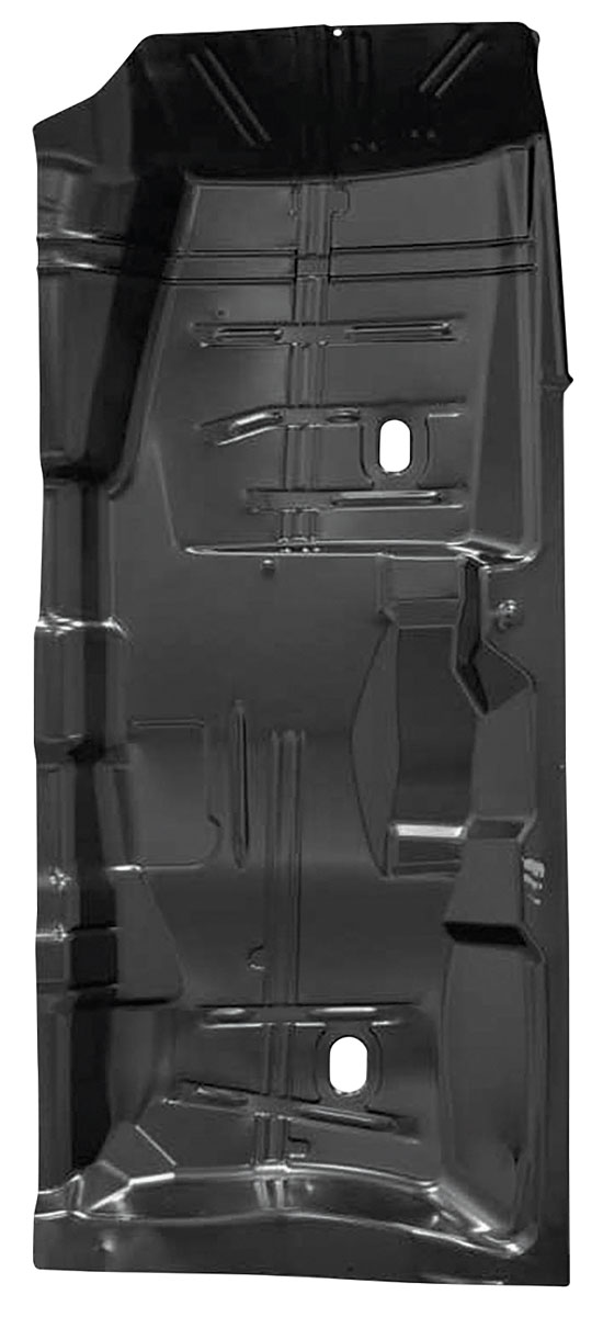 Reproduced to factory specifications, these steel floor pan halves are stamped from sturdy sheet steel with precision to match the original contours and ridges. Each 62" x 30" pan arrives with an electro deposit primer for supreme corrosion resistance.