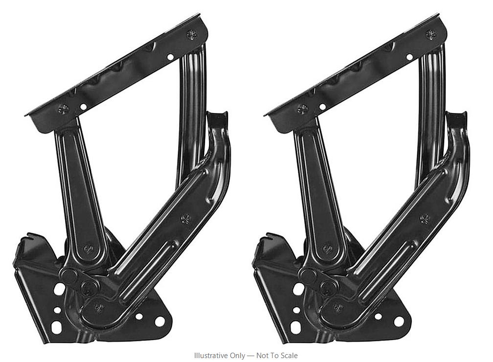 These hinges are produced in stamped steel and then EDP-coated for corrosion resistance. Ensure your hood opens and closes as smooth as it did when it rolled off the factory assembly line with these premium reproduction hinges.