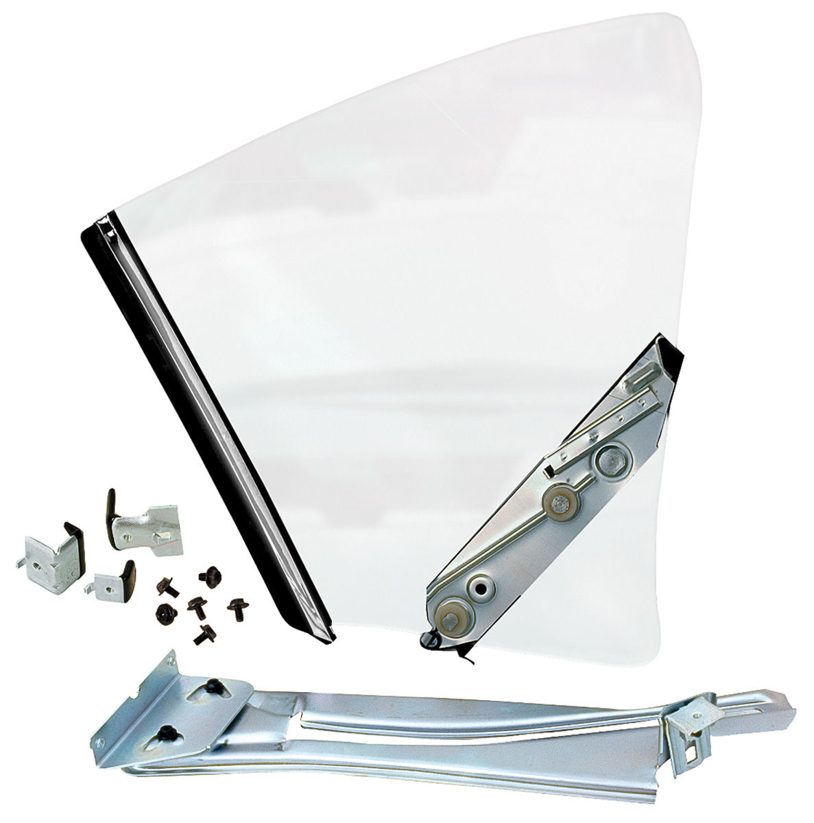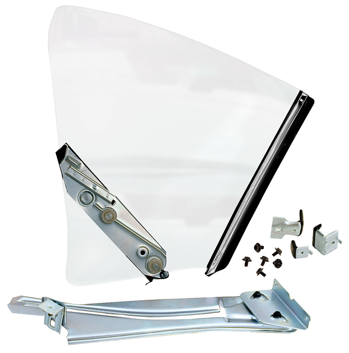 These complete quarter glass assemblies are the most comprehensive on the market today. Get the clear glass, chrome trim, weatherstrip, guides, rollers, stops and hardware in one convenient assembly. Each component is an authentic reproduction of original equipment to ensure a proper fit and function. Sold per each for right hand or left hand side, or as a pair.